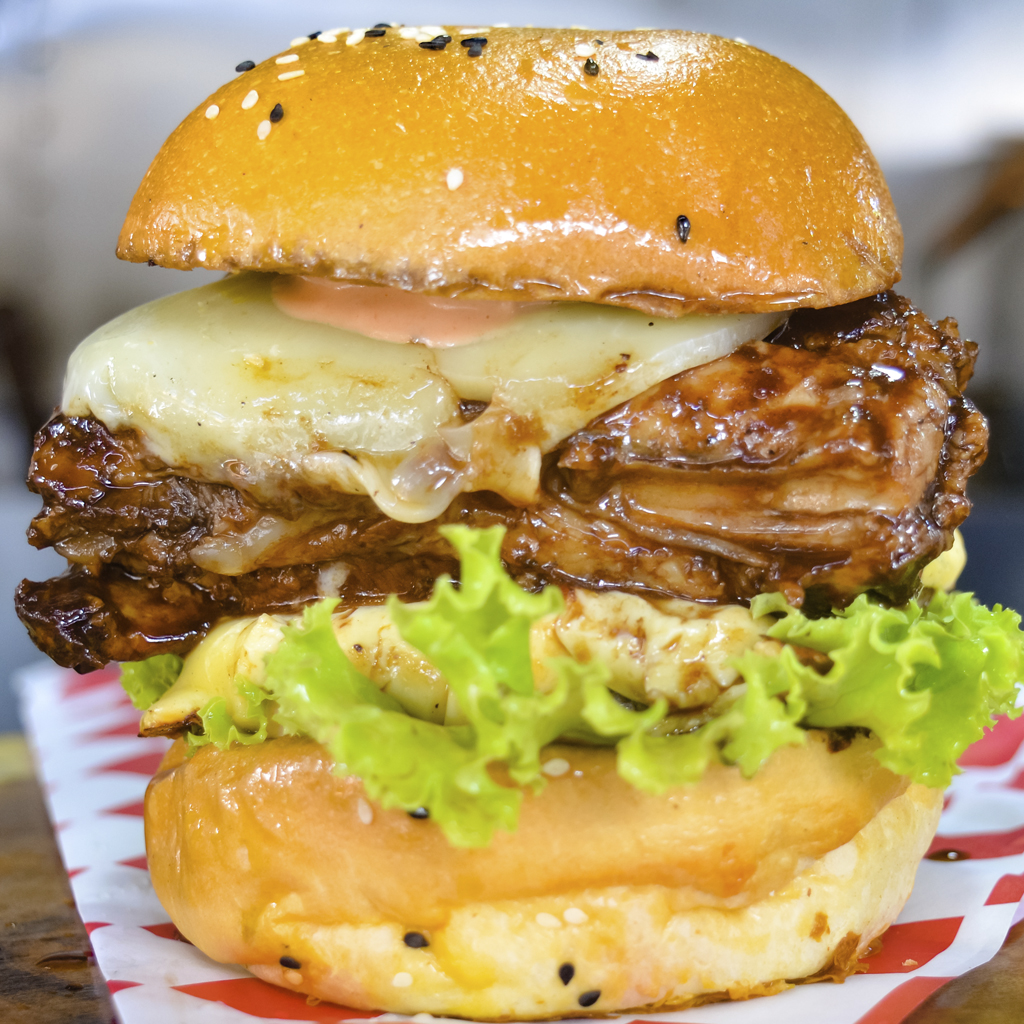 6 Oz de Res Premium, Doble Queso Americano y Doble Bacon.