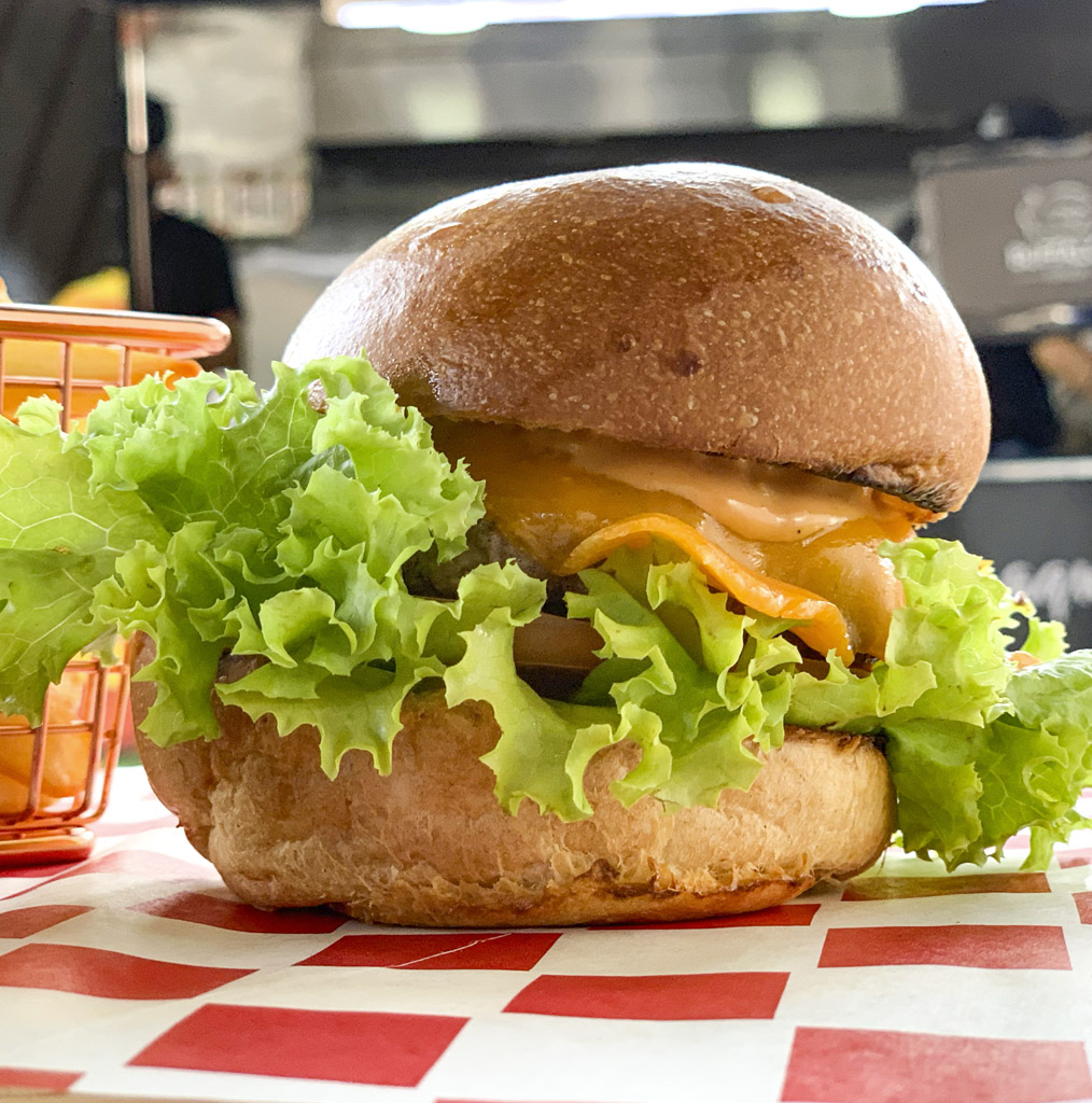 4 Oz de carne de res premium, Quedo Cheddar y salsa especial con papas fritas incluidas.